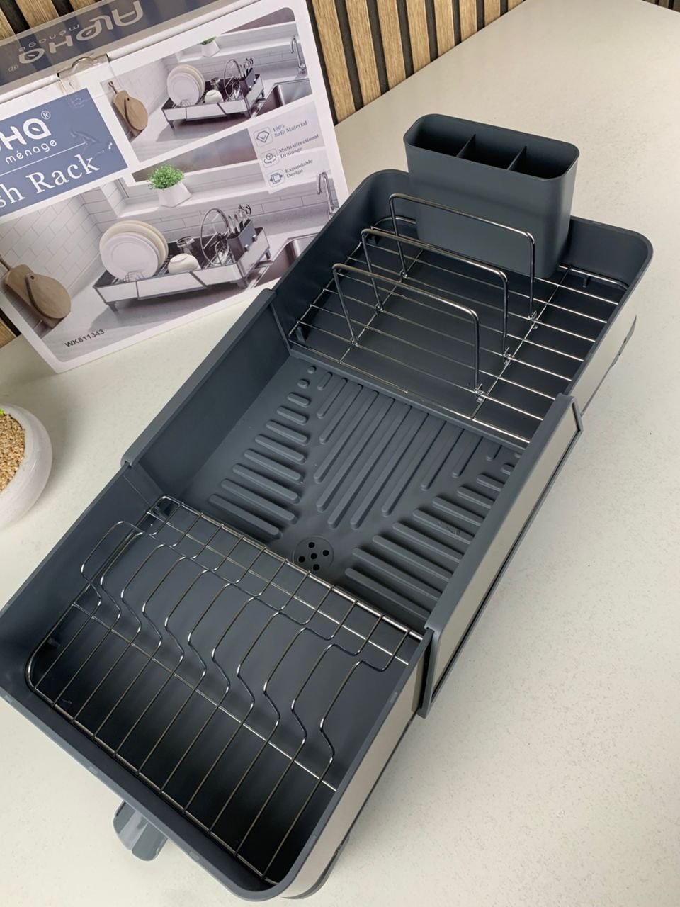 ✔️ Égouttoir extensible pour s’adapter à toutes les tailles de plans de travail |