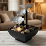 Fontaine Décorative en Forme de Pétales 3 Niveaux avec LED & Pierres – Cascade Zen de Table