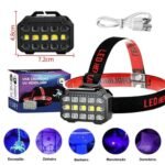 Lampe frontale LED rechargeable SQ-818-UV avec lumière UV – Éclairage mains libres puissant