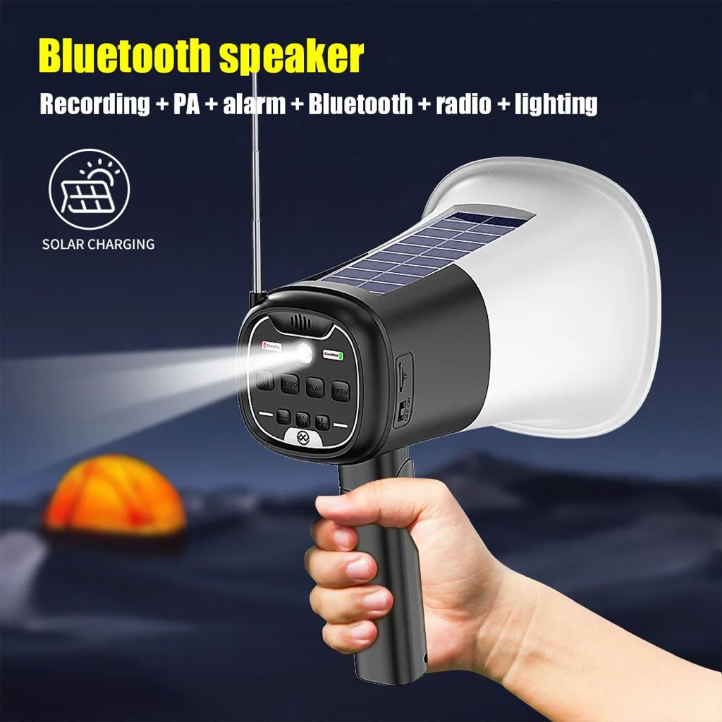 Mégaphone Solaire Portable avec Bluetooth V5.3 & Enregistrement