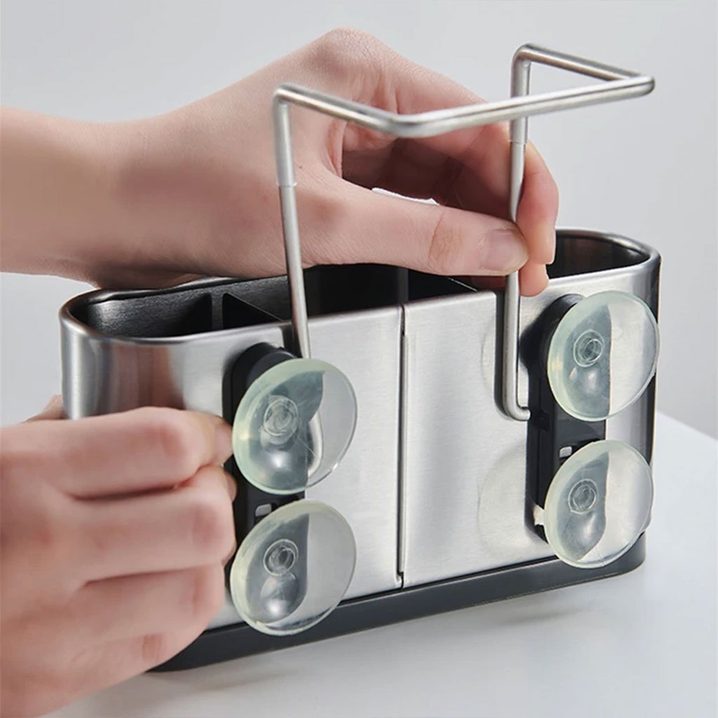 Organiseur d’évier de cuisine porte-éponge en acier inoxydable – Stabilité maximale et hygiène au quotidien