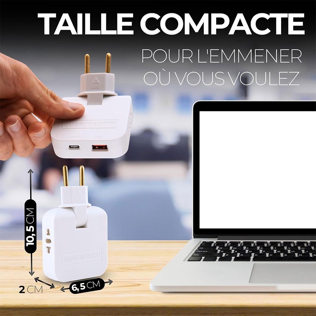 ✔️ 4-en-1 : 2 prises + 1 port USB + 1 port Type-C |