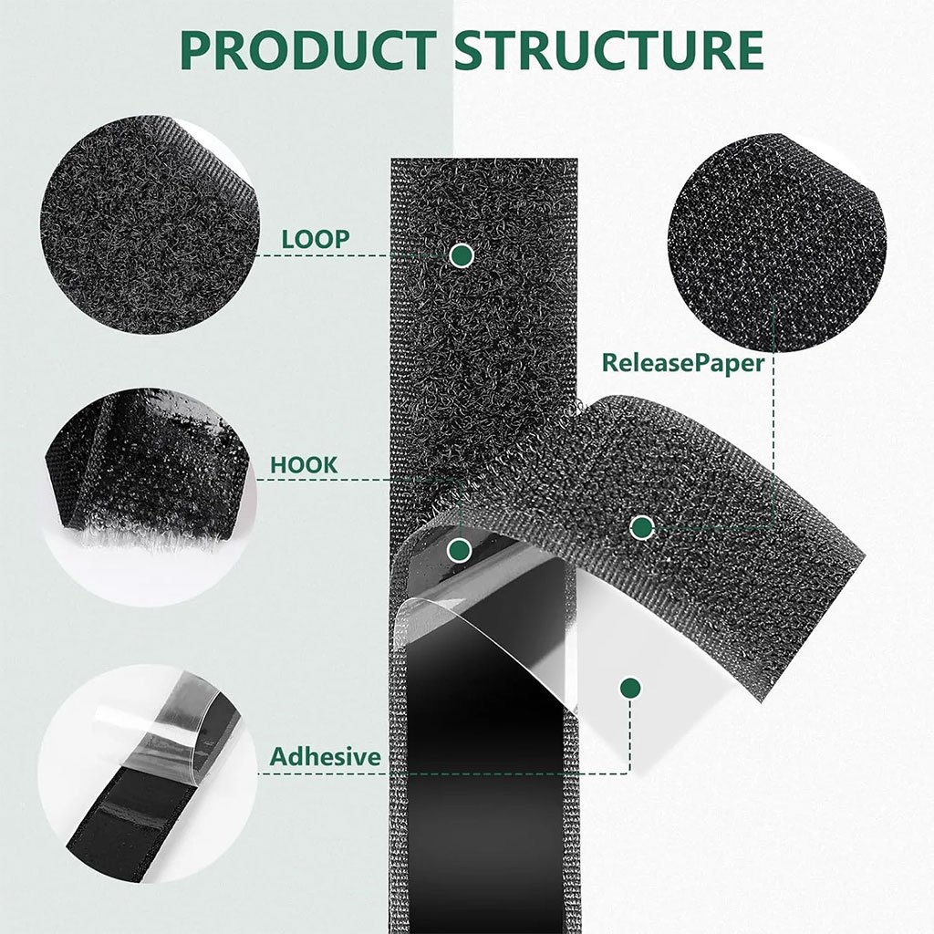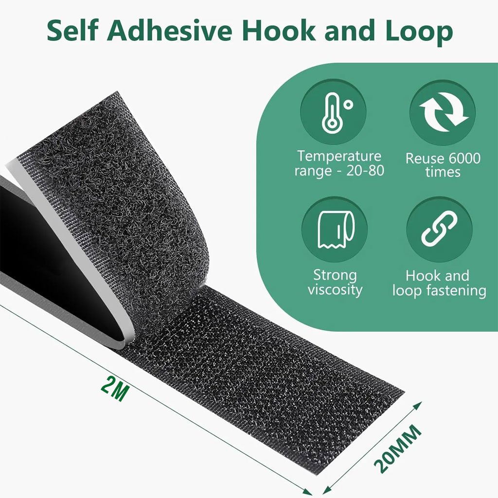 Ruban Velcro Adhésif Double Face Réutilisable (2 m) – Fixation Pro Sans Perçage